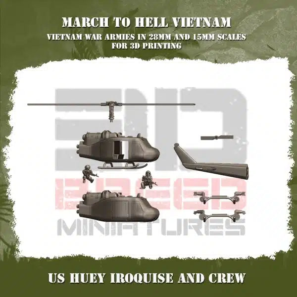 VIETNAM WAR US ARMY VIETNAM HUEY IROQUISE AND CREW | 3DBreed 15mm Wargaming Miniatures