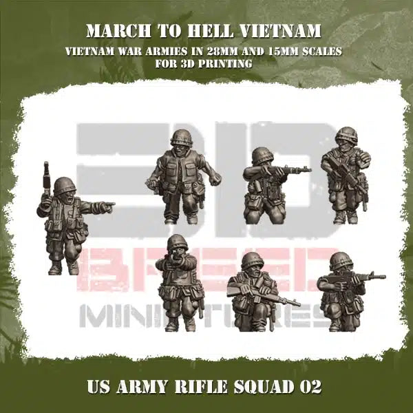 VIETNAM WAR US ARMY VIETNAM RIFLE SQUAD | 3DBreed 15mm Wargaming Miniatures